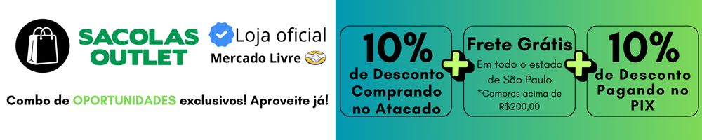 - Dimensões do Sacola G Horizontel : 35cm x 30cm x 13,5cm (Largura x Altura x Sanfona);